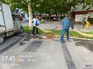 清晨雾气未散,他们手持大扫帚,正将路边的落叶与杂物往一处聚拢。为新一天的园区生活铺就整洁的开篇!