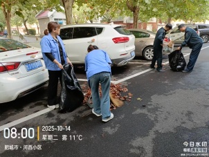 保洁阿姨和师傅默契配合,一人在前清扫,一人在后归拢,让铺满落叶的车位渐渐露出原本的模样。深秋的凉意挡不住他们的专注,每一次挥动扫帚,都是对“家园整洁”的承诺。
