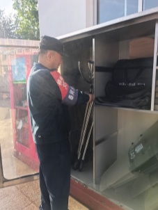 演练前期,物业安保团队首先对校园防暴器材柜进行了全面检查与清点。安保人员对防暴钢叉、盾牌、警棍等器材逐一核验,重点检查装备的完整性、性能状态与存放规范性,确保每件器材时刻处于“拿得出、用得上、用得好”的战备状态,从源头筑牢安全防护基础。