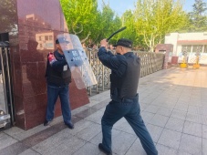 随着演练指令下达,模拟“突发险情”处置环节正式展开。安保人员迅速响应,按照预案分工开展协同处置:盾牌手构筑坚固防御屏障,警棍手与钢叉手紧密配合,形成攻防一体的战术阵型,精准控制“目标”活动范围,快速、规范地完成了应急处置全流程。