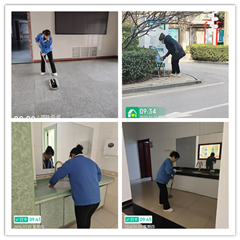 元旦期间,保洁人员穿梭在各个区域:卫生间里,他们仔细擦拭水池去除水渍污垢;健身房内,他们认真清扫还原整洁空间;公共走廊上,他们反复拖拭确保地面干净;户外区域,他们及时清扫落叶保持环境清爽,用坚守诠释责任与担当。